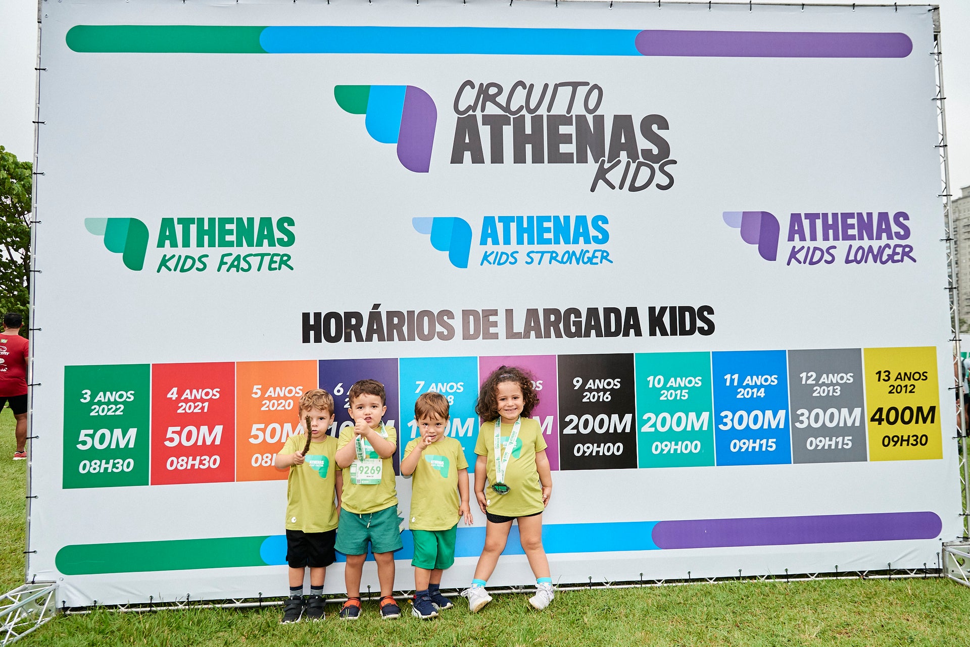 Corrida para crianças de 3 a 13 anos com distâncias adequadas a cada faixa etária de 50m a 300m.